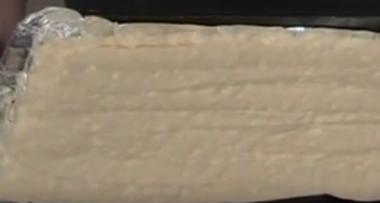 • מניחים את התבנית עם המשטח במקרר ומתחילים בהכנת החלק העליון.